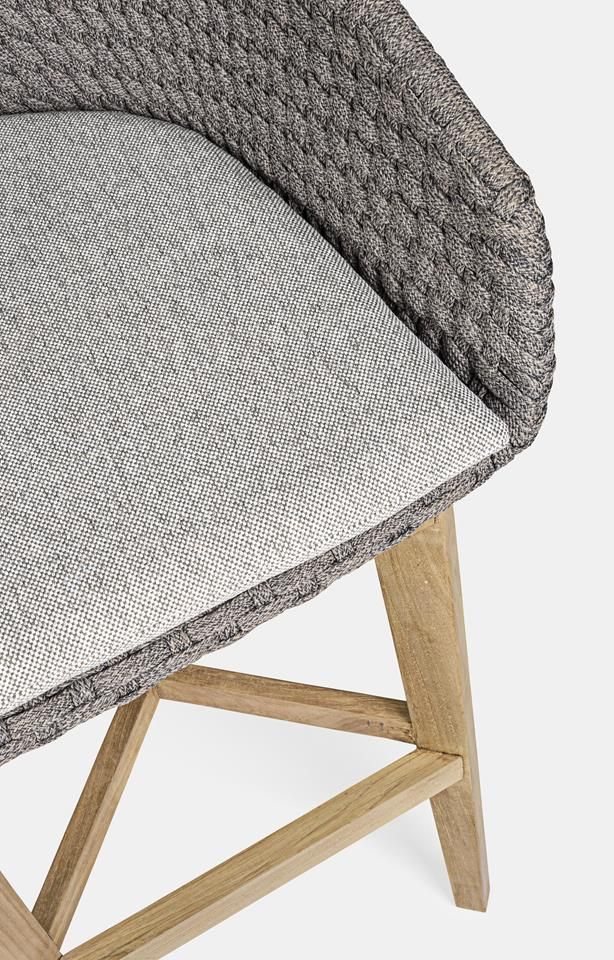 Der Garten Barhocker von Bizzotto ist raffiniert mit Ropetechnik geflochten und einem unverwüstlichen Rahmen aus pulverbeschichtetem Aluminium.