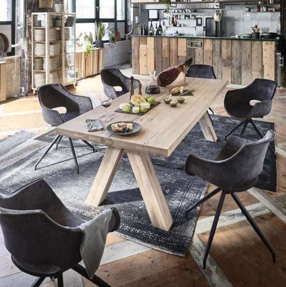 Das Leben genießen mit dem Esstisch Portland und einer Tischplatte in 6cm starker rustic Oak. Designen Sie sich Ihren neuen Esszimmertisch und wählen Sie hier Ihr Lieblingsstück aus. Die Platte des Tisches erhalten Sie immer aus massiver Eiche (Zerreiche) mit Wuchsrissen, Kerben und anderen individuellen Merkmalen echten Holzes in einer am Rand aufgedoppelten Stärke von 6cm. Viele Holzfarben selektieren Sie preisgleich direkt hier beim Artikel. Auch die Größe bestimmen Sie direkt hier. Bitte beachten Sie, das wir ab einer Größe von 260 cm (3 cm) bzw. 280 cm (6 cm) ein zusätzliches Bein aus Stahl in 7x7 cm mitliefern (im Preis enthalten), damit sich die Tischplatten aufgrund des Gewichts nicht durchbiegen.