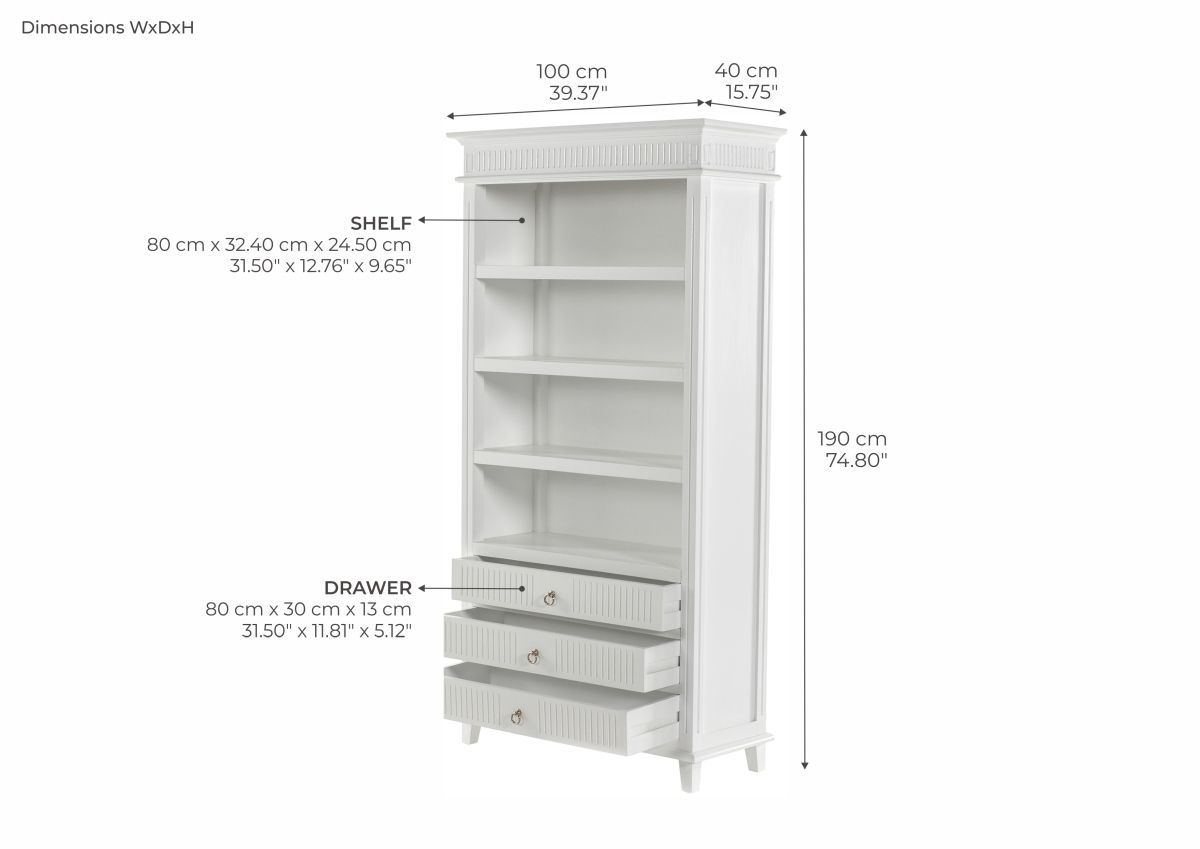 Bücherregal weiß Landhausstil 4 Fächer 3 Schubladen