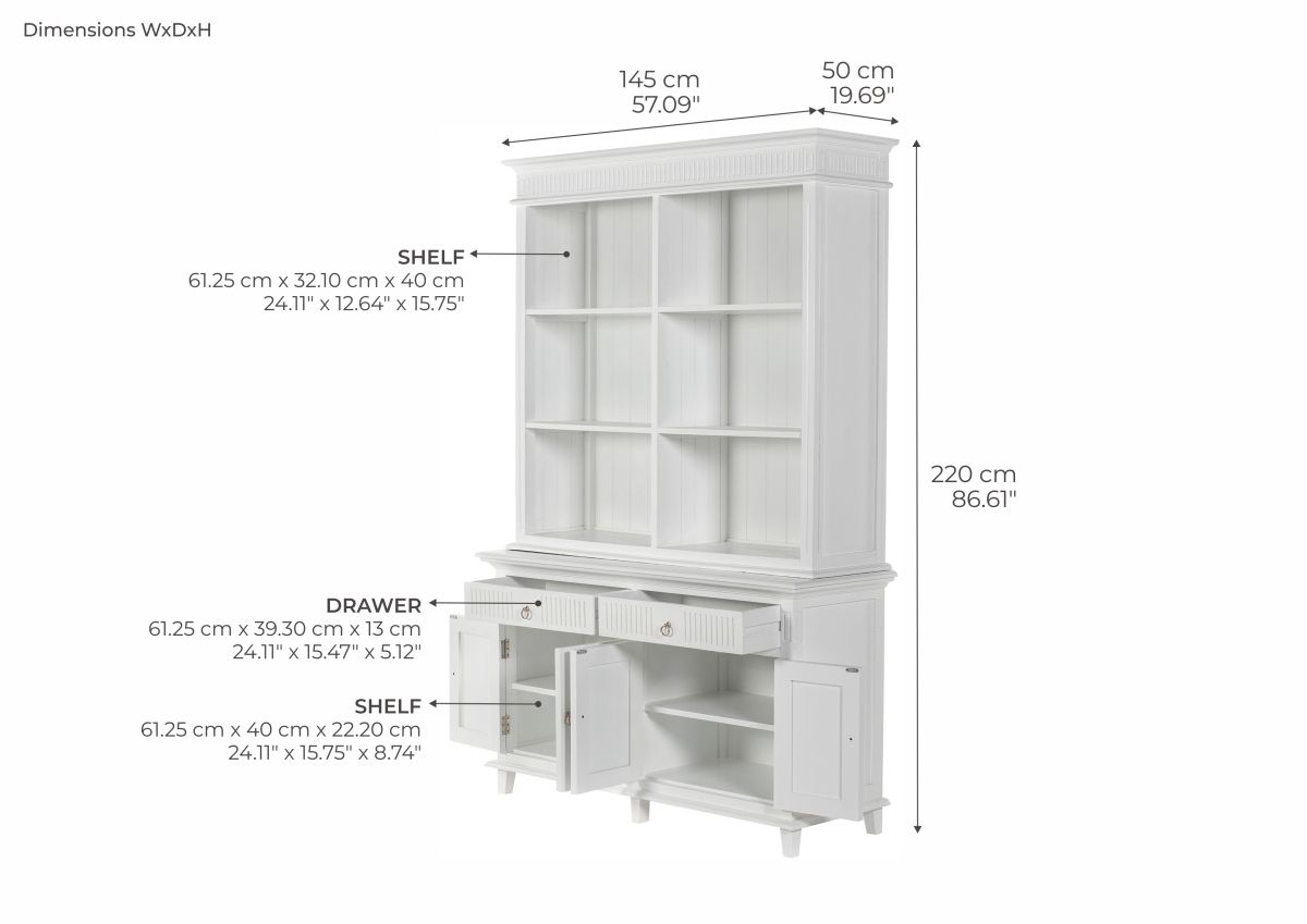 Gesamt Maße: Breite 145 cm, Tiefe: 50 cm, Höhe 220 cm
