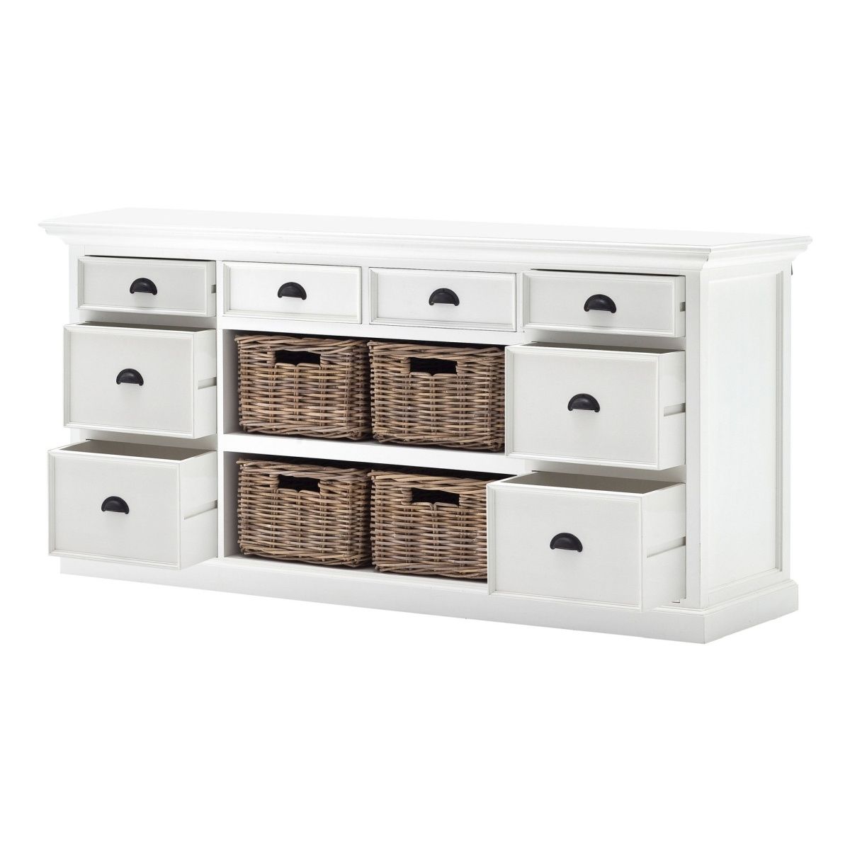 Der Landhaus Buffetschrank Halifax macht jeden Raum schön! Der geerkerte Aufsatz, die vielen Schubladen und Rattankörbe sorgen bei der Aufsatzvitrine HALIFAX für eine unvergleichliche Optik! Imposant hoch ist das Aufsatzbuffet Halifax mit seinen 220 cm. Liebevolle Detailarbeiten machen dieses Landhaus Möbel im Shabby chic zum "Must Have" für Landhausstil Liebhaber.