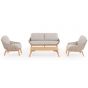 Dieses Set besteht aus 2 Sesseln, einer Gartenbank und dem Couchtisch