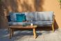 Das Gartensofa San Remo hat einen Aluminiumrahmen und ist mit Seil und Teak FSC® veredelt. Seil ist in den letzten Jahren zu einem echten Trend geworden und ist sehr stark und UV-beständig. Das Set ist mit bequemen Kissen ausgestattet. Diese Kissen haben einen starken Außenstoff aus Olefin und eine Füllung aus Standardschaum. Es wird empfohlen, die Kissen nach Gebrauch drinnen zu lagern.