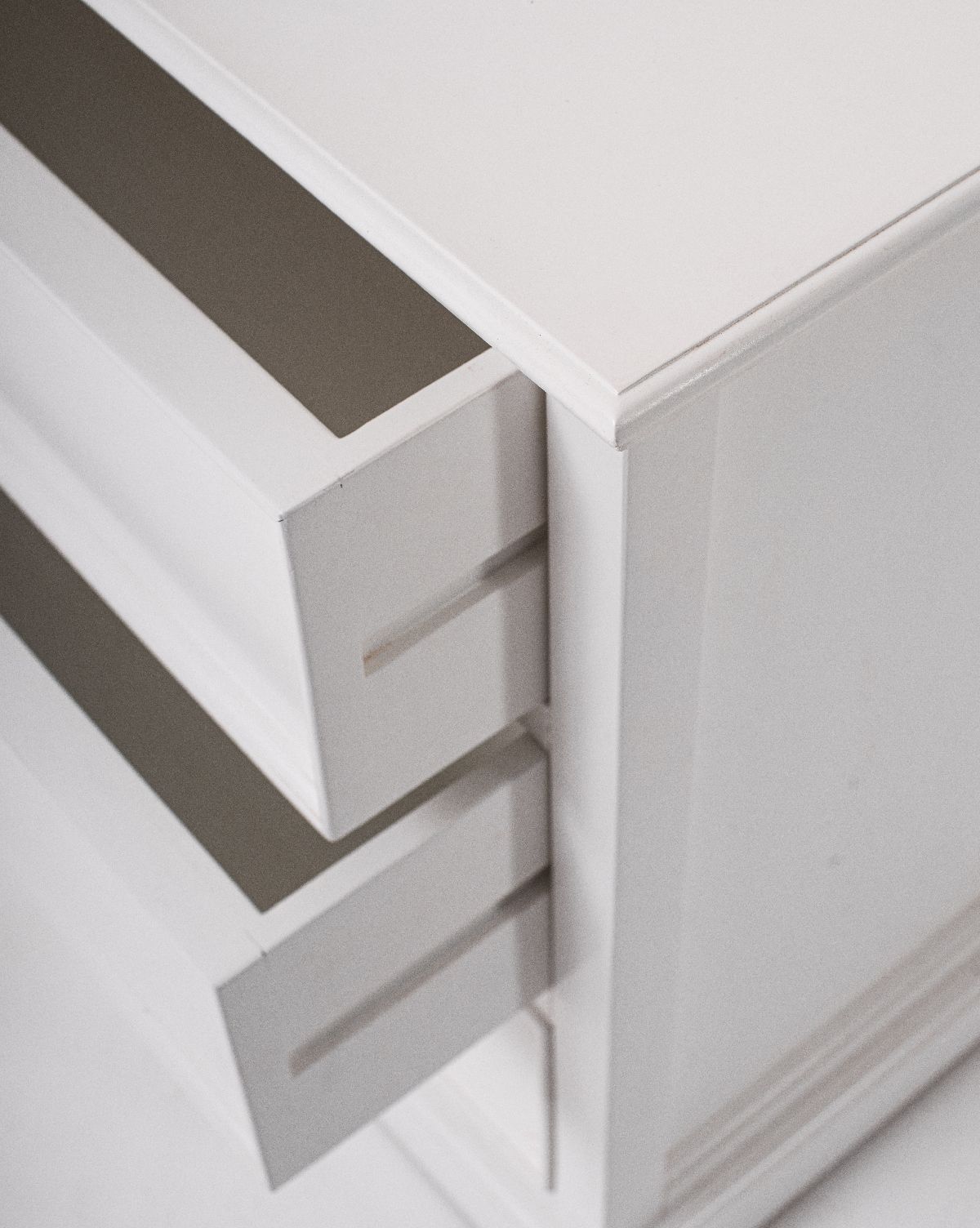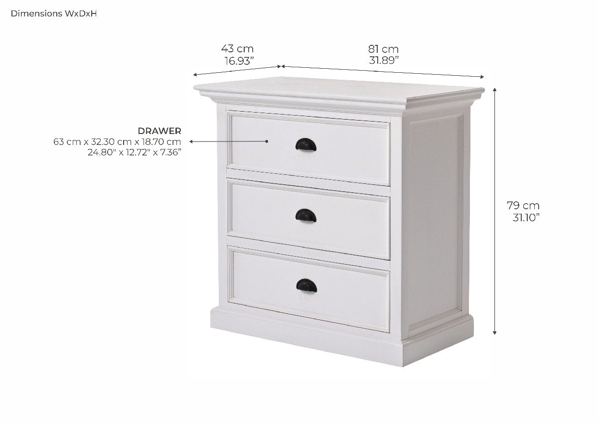 Die Kommode Halifax Grand weiss mit drei Schubladen ist stolze 81 cm breit.