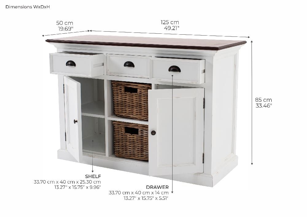 Das Halifax Accent Sideboard mit 2 Körben hat folgende Daten: