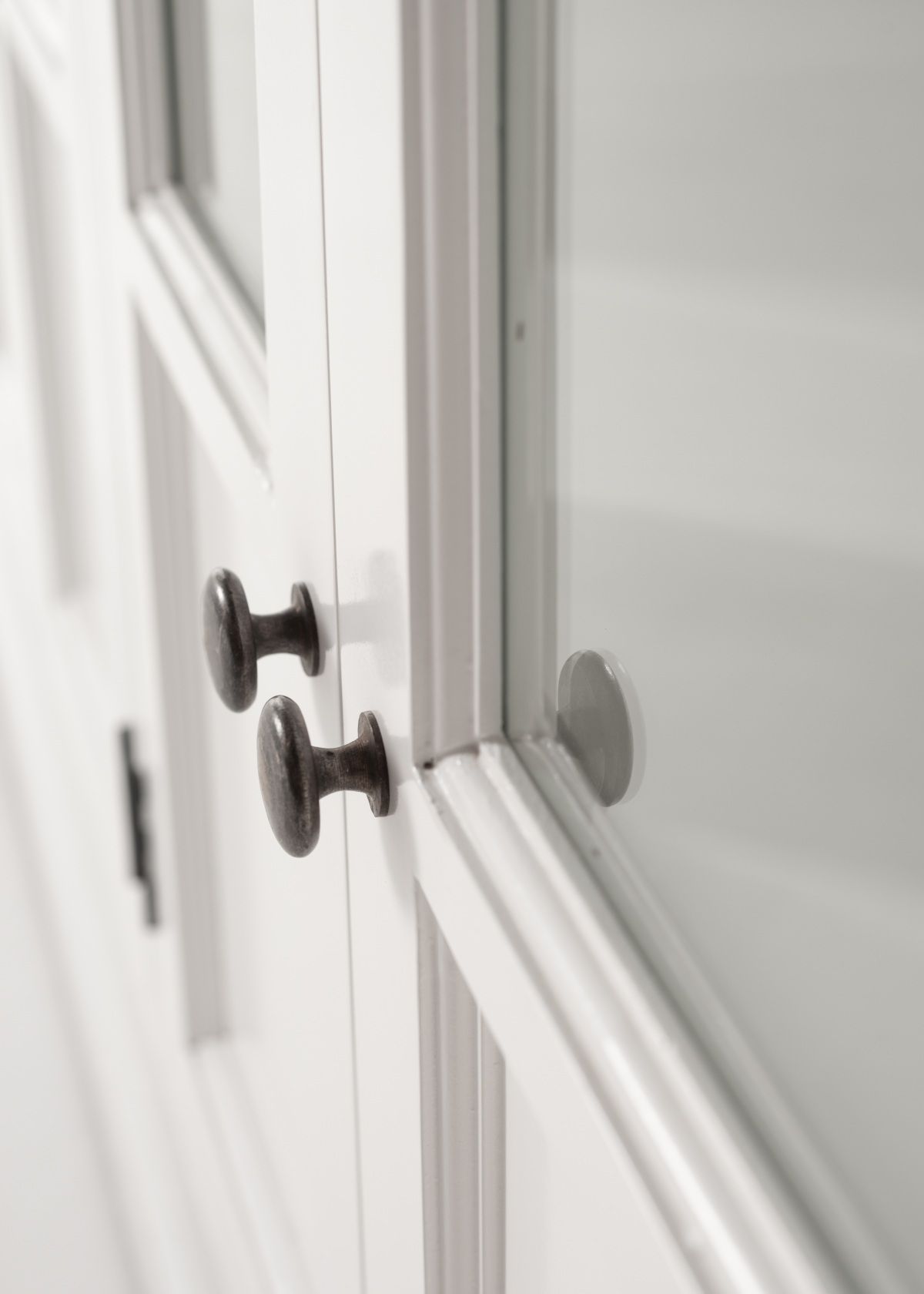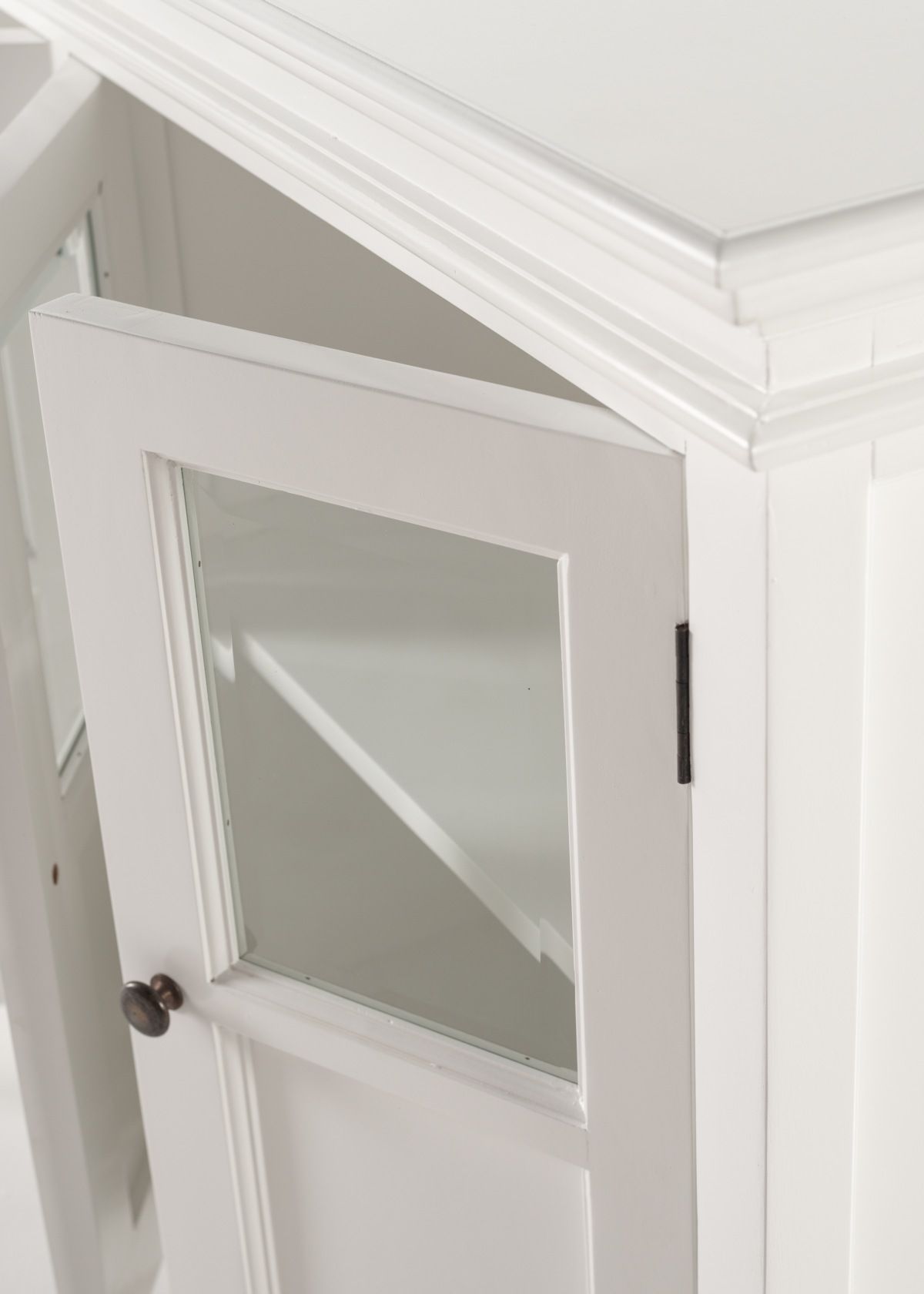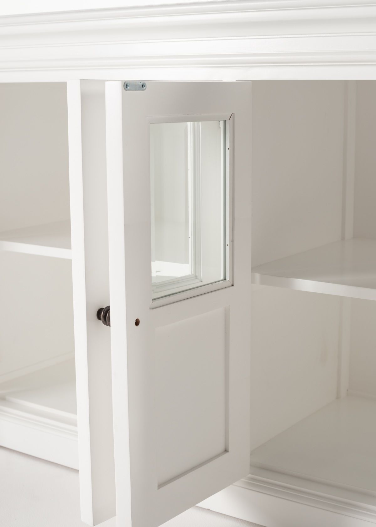 Landhausstil Sideboard weiß Art. B196 mit vier teilweise verglasten Türen: Vier im oberen Bereich verglaste Türen mit einem festen Einlegeboden dahinter, Beschläge aus Messing antikisiert Dieses Produkt wird komplett montiert geliefert, sodass Sie es genießen können, sobald es bei Ihnen zu Hause ankommt.
