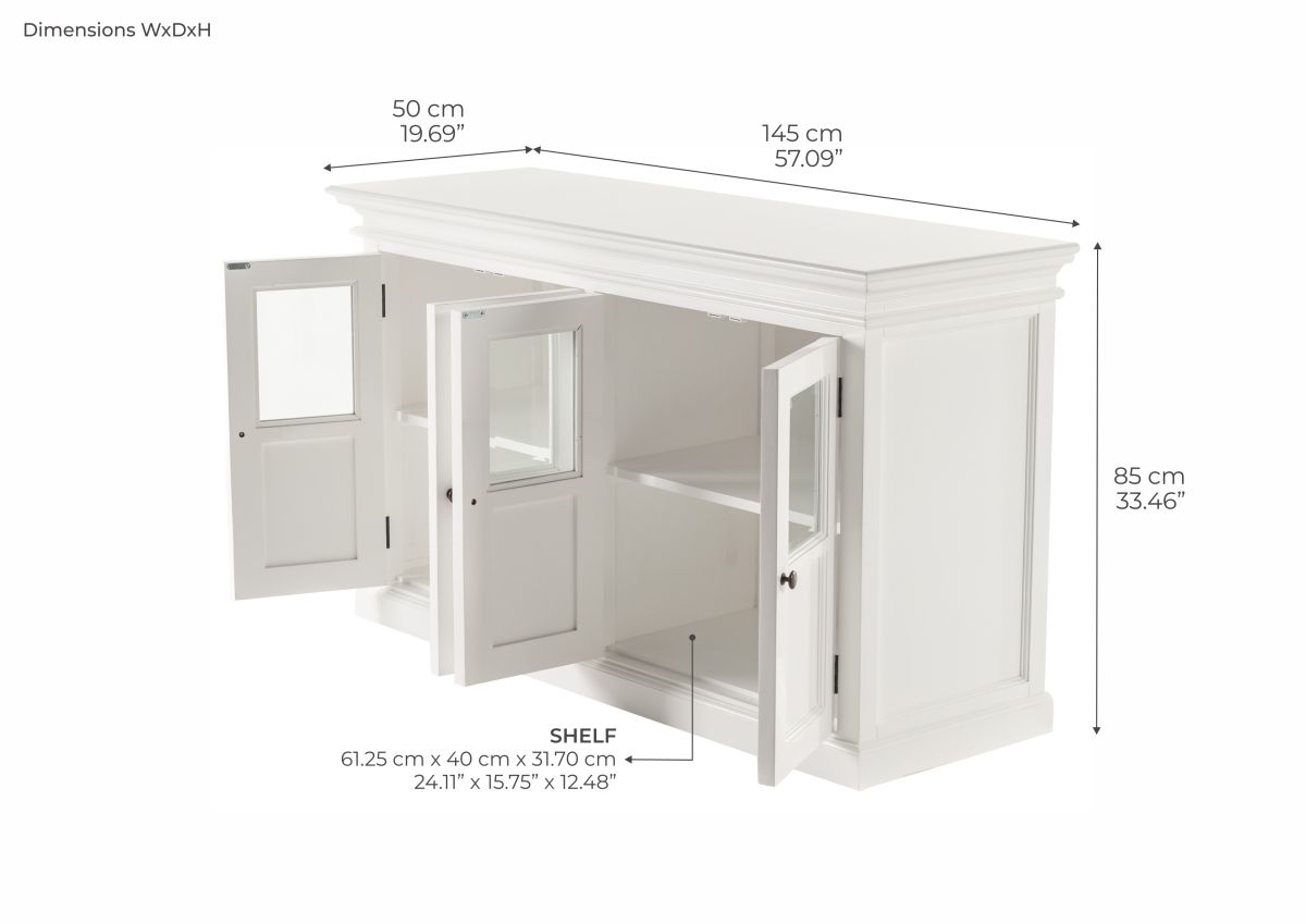 Sideboard weiß mit 4 Glastüren 145cm breit Halifax