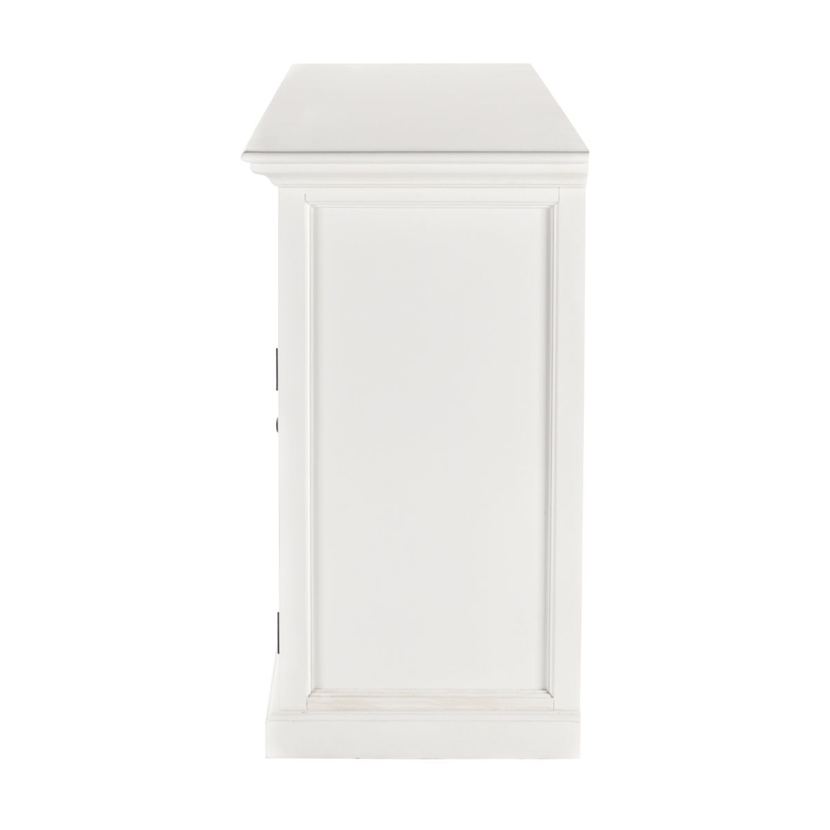Landhausstil Sideboard weiß Art. B194 mit vier Türen und vier Schubladen: 4 Schubladen oben, unten 4 Türen mit einem festen Einlegeboden dahinter, Beschläge aus Messing antikisiert. Dieses Produkt wird komplett montiert geliefert, sodass Sie es genießen können, sobald es bei Ihnen zu Hause ankommt.