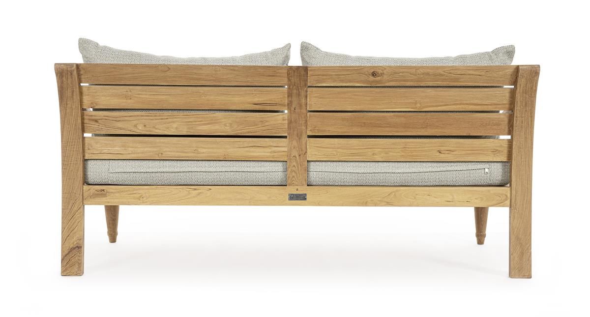 Gartensofa wetterfest Karuba - XL 2 Sitzer Outdoor Sofa von Bizzotto Das Karuba Teakholz Sofa in wetterest aus der Bizzotto-Kollektion hat durch seine schöne Verarbeitung einen kolonialen Charakter. Das Teakholz ist zu 100% FSC zertifiziert und somit nachhaltig produziert. Da diese Serie aus recyceltem Teakholz hergestellt ist, hat sie einen Vintage-Look und ist sandgestrahlt. Möchten Sie die Optik erhalten, schützen Sie die Gartensofas vor direkter Sonneneinstrahlung. Das Outdoor Sofa wird inklusive abziehbarer Kissen geliefert. Der Außenstoff der Kissen ist ein schönes und starkes Olefin. Die Füllung ist mit Standardschaum versehen. Das bedeutet, dass die Kissen nicht im Freien gelassen werden können.