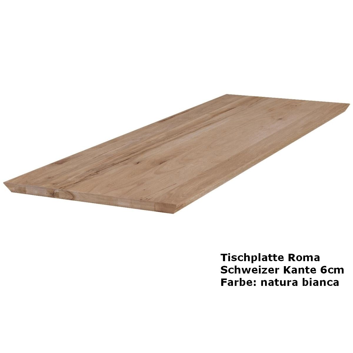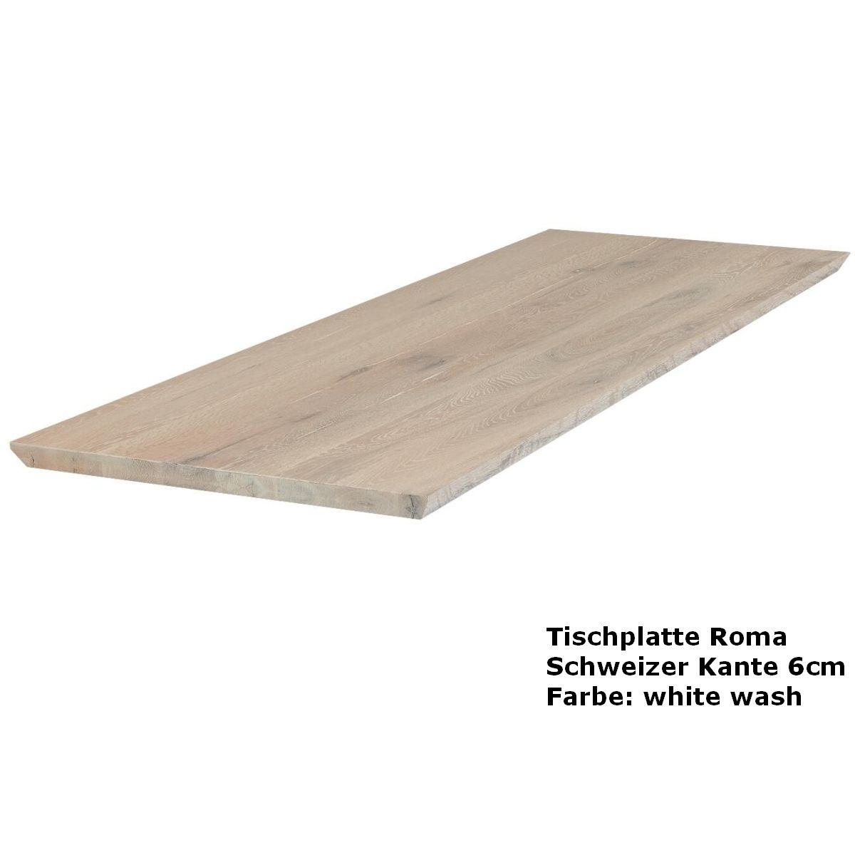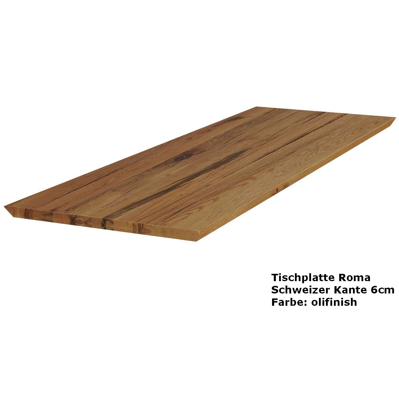 Wenn Sie schon ein schönes Tischgestell haben, finden Sie hier eine einzigartige Tischplatte aus massiver Balkeneiche mit schrägen Kanten. Wählen Sie aus einer Plattenstärke von 6 cm (3 cm vollmassiv am Rand auf 6 cm aufgedoppelt). Ab 180 x 100 cm können Sie hier alle möglichen Größen bis 300 cm Länge wählen. Zudem besteht bei Auswahl der 6 cm starken Roma Tischplatte die Möglichkeit auch eine Tiefe von 110 cm zu erhalten.